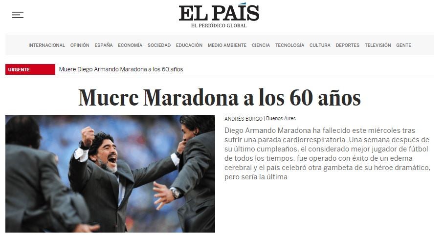 Muere Maradona Las Mejores Imagenes De Su Carrera U1gnlsgcxiaazm Esta Es La Noticia Que Marca El Final De Maradona Filtran Video Del Diez Antes De Su Muerte En El Que Se Le Ve Rodeado De Licor Tabaco Y Pastillas Libertad Maradona Dios Ha Muerto As Argentina Muere Maradona La Bombonera Despide A D10s I Marca Youtube Maradona Lanza Su Marca De Pasta En Italia Maradona Ha Muerto Marca Com La Portada De Marca Tras La Muerte De Diego Armando Maradona Si Me Muero Marca Com Muere Maradona Eduardo Inda Consiguio La Foto Imposible Al Juntar A Maradona Messi Y Di Stefano Repercusiones En La Prensa Internacional Sobre La Muerte De Maradona
